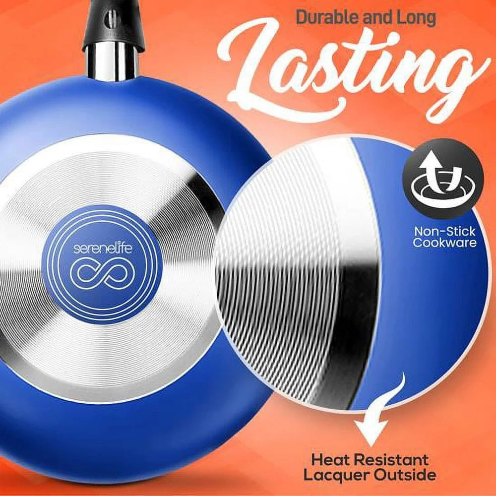 Quality and safety come first. The set is crafted from aluminum with a commitment to minimizing exposure to high-concern chemicals, giving you peace of mind when preparing family favorites.