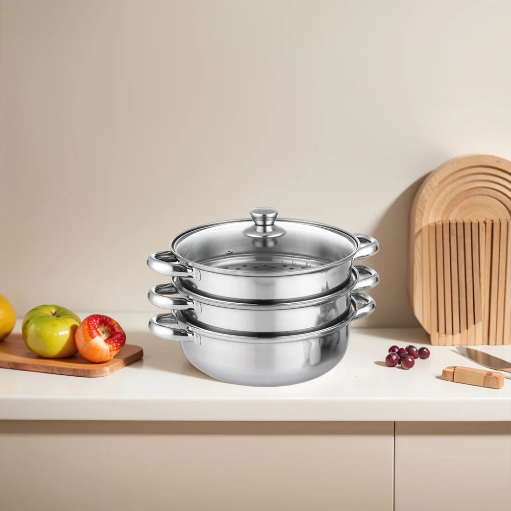 3 Tier Steamer Pot With Lid Multipurpose Stainless Steel
