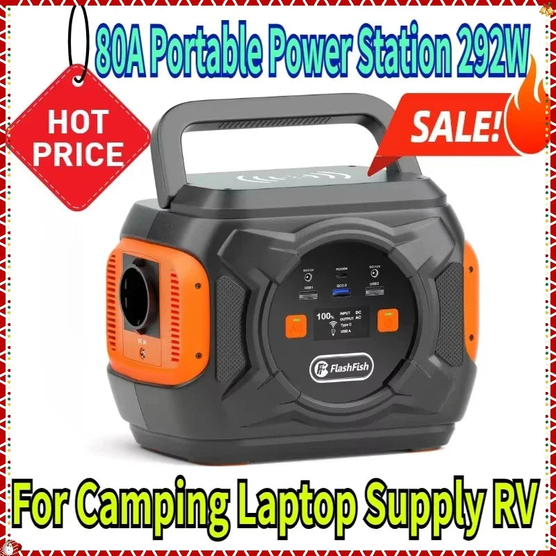 80A Portable Power Station 292W Emergency Solar Generator Battery Pack Wireless Charging for Camping Laptop RV