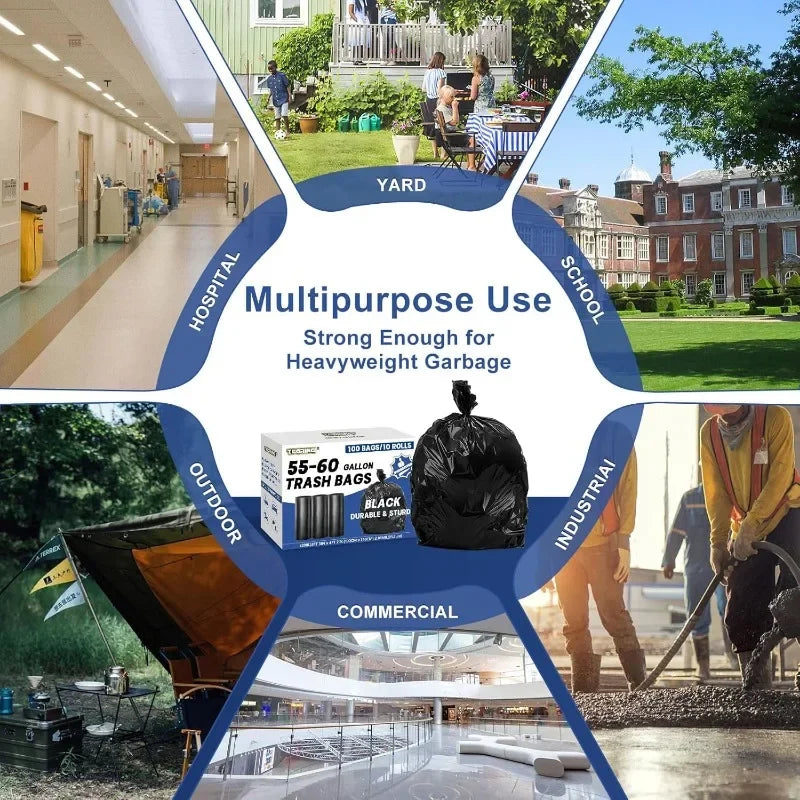 Engineered for demanding cleanups, the 55-60 Gal Heavy Duty Trash Bags are the unscented, black solution you can rely on. With a robust 2.1 mil thickness, these bags resist tears and punctures, keeping waste contained even with sharp or heavy loads. Measuring 39" x 55", they fit most standard 55-gallon bins, making bin lining fast, clean, and worry-free.