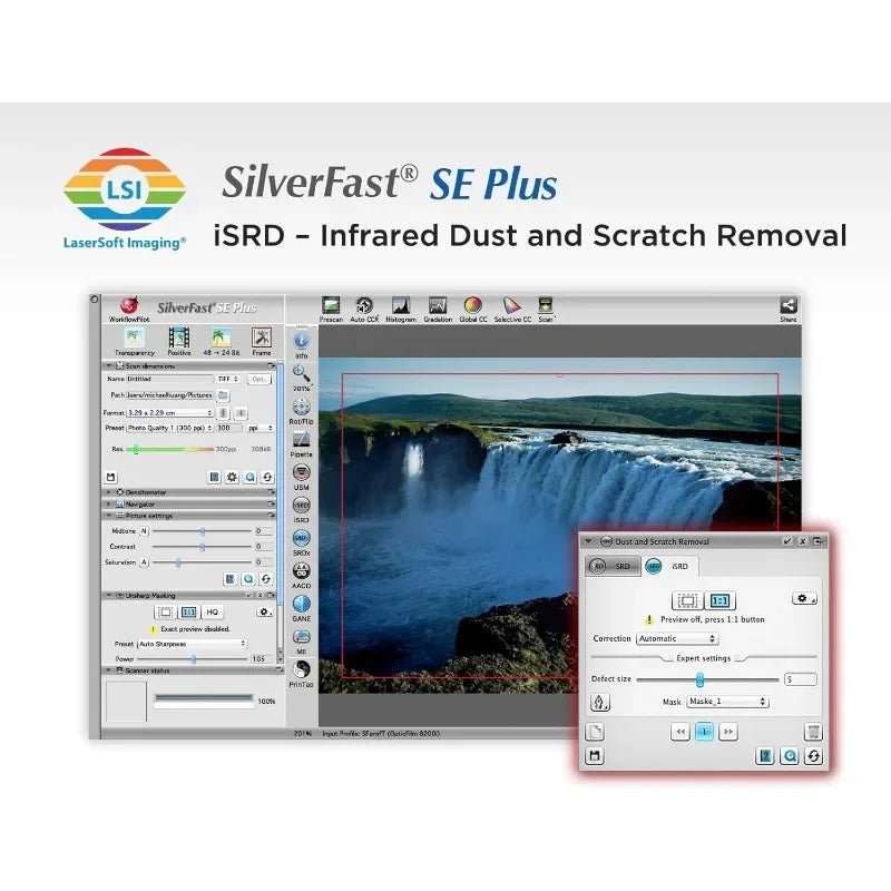 - Dust & scratch management: Integrated infrared dust/scratch removal for clean scans