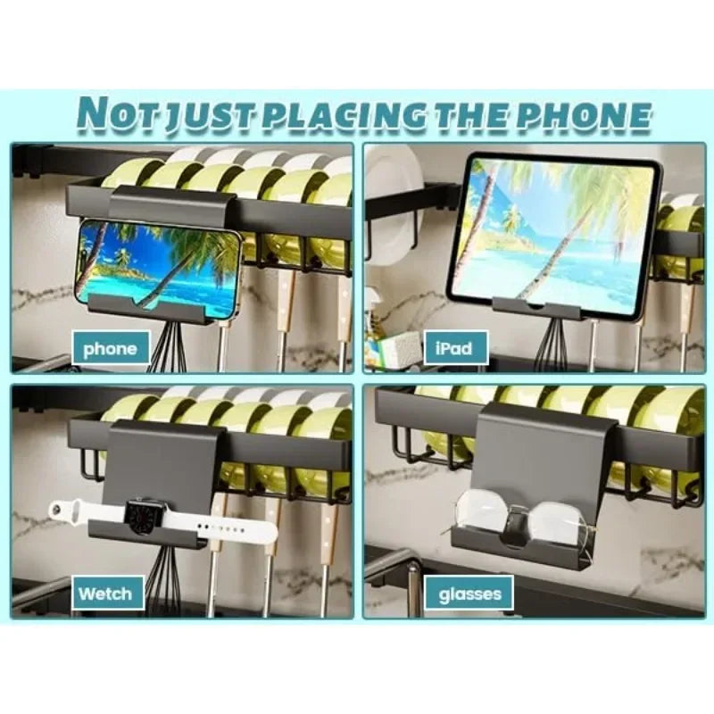 Upgrade your kitchen organization with the Over Sink Dish Drying Rack, a two-tier, large-capacity drying solution that extends to fit your sink and cooking style. With a snap-on design and adjustable height and length, this rack stays secure while offering ample space for plates, bowls, and utensils.