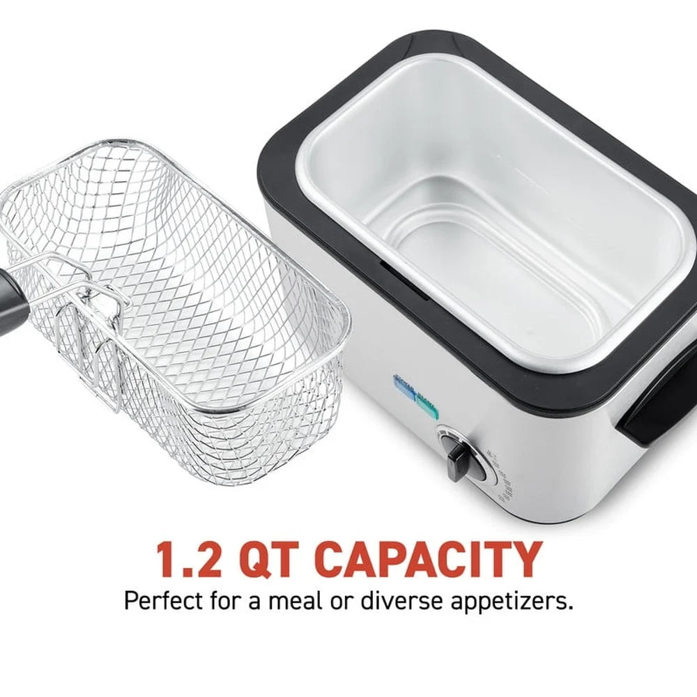 Compact Electric Deep Fryer 1.2 Qt 1200W Adjustable Temp