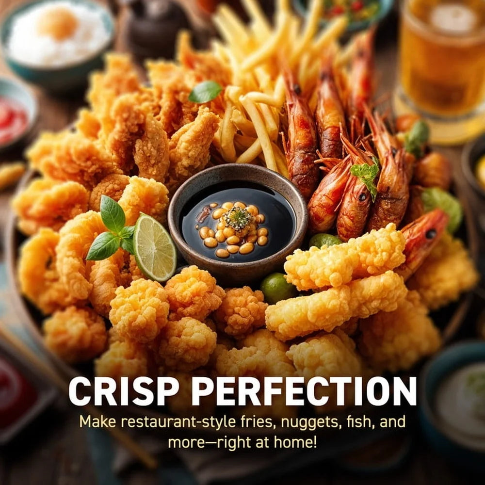 Meet the Compact Electric Deep Fryer 1.2 Qt 1200W Adjustable Temp — a space-saving solution for crisp, delicious fried favorites. Designed for small kitchens, dorm rooms, or quick weeknight meals, this fryer brings restaurant-style results to your countertop.