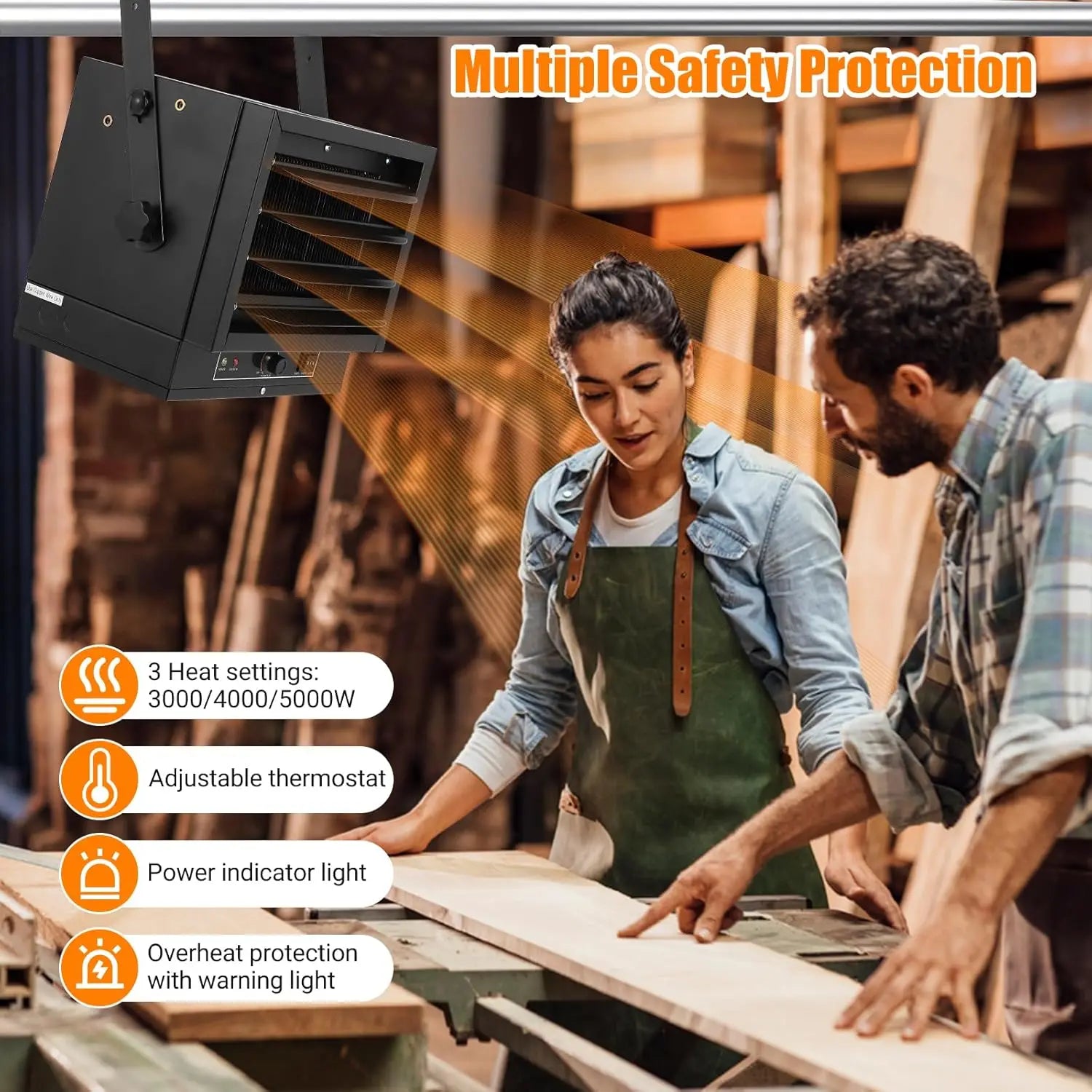 Keep your garage warm with the Adoolla Electric Garage Heater, a powerful ceiling-mount unit designed for reliable warmth in larger spaces. This 5000 to 7500W heater runs on 240V and is built for steady performance with safety in mind.