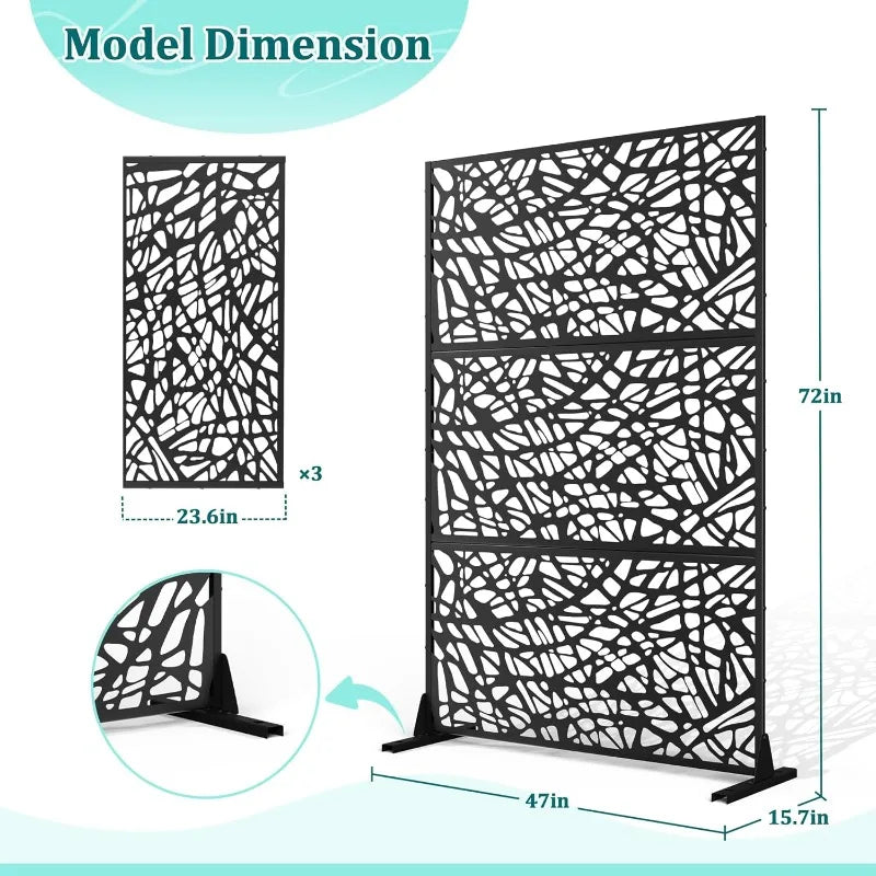 Metal Outdoor Privacy Screen Fence Panel – a freestanding decorative screen sized 72 inches high by 47 inches wide, designed to shield your patio, deck, or backyard from unwanted views while elevating outdoor style.