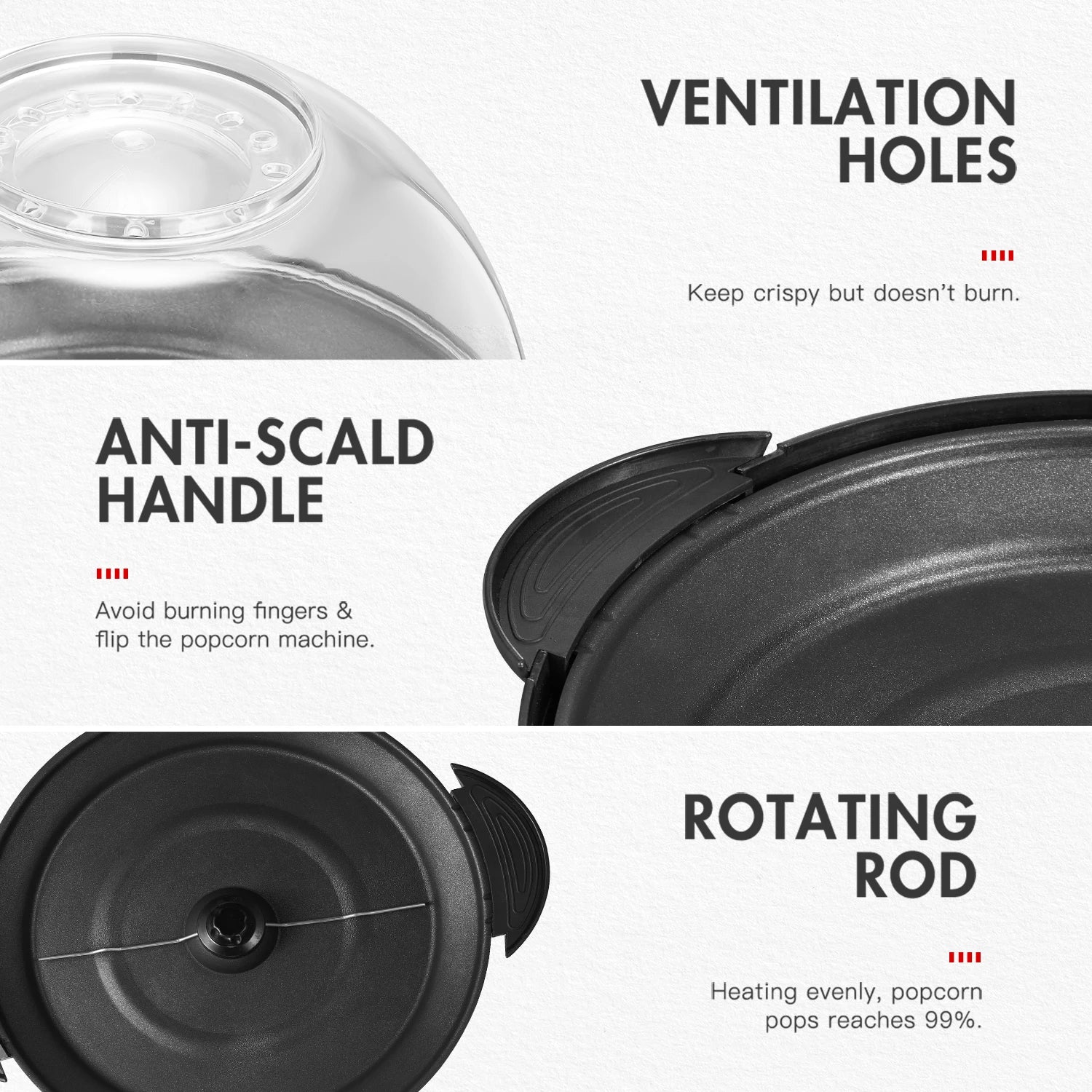 - Nonstick Plate: Enjoy effortless popcorn release and easy cleaning, making your popcorn-making experience hassle-free.