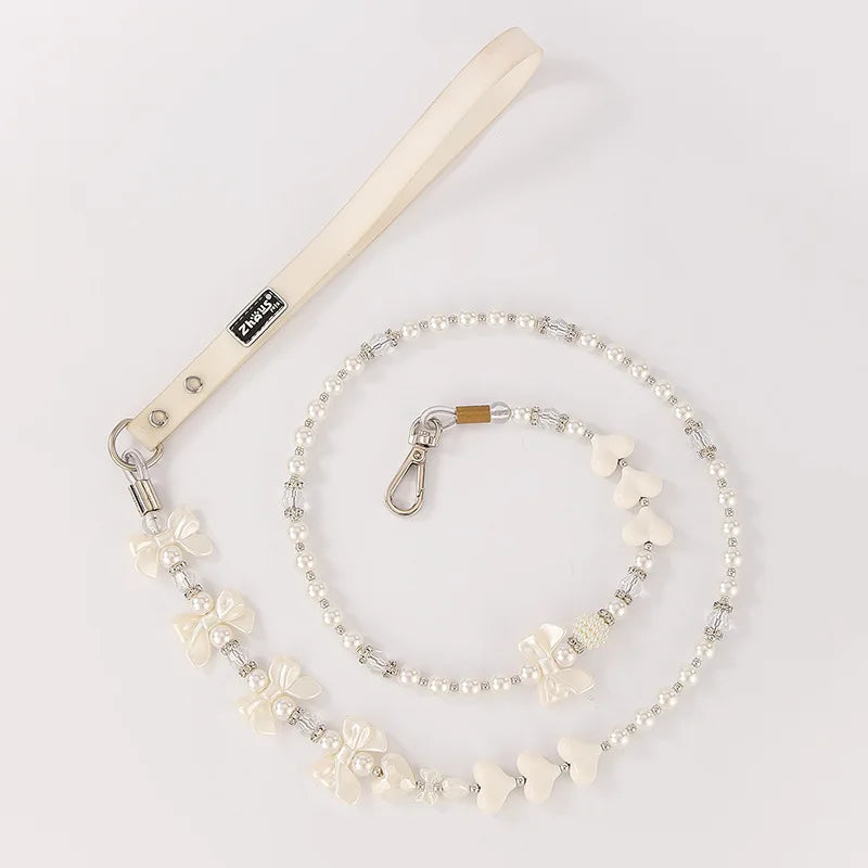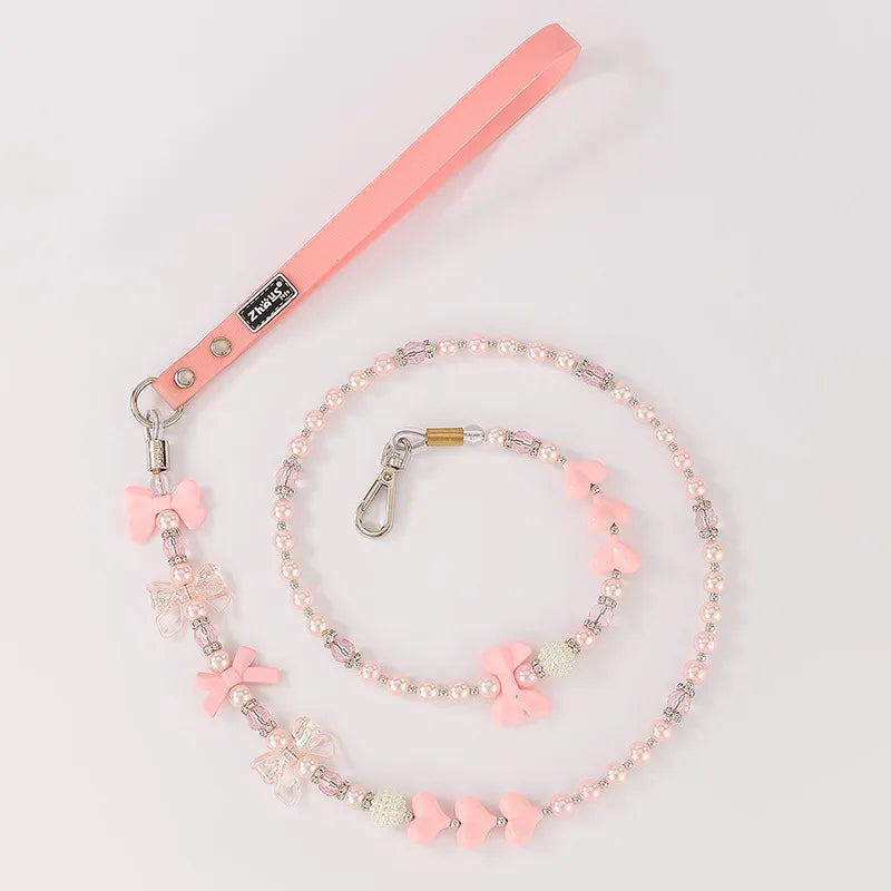The leash features a stainless steel wire rope core wrapped with durable tape for a secure, comfortable grip. A subtle beaded accent adds charm without compromising weight or control. Crafted in Mainland China with meticulous attention to detail to deliver a reliable everyday leash for small pets.