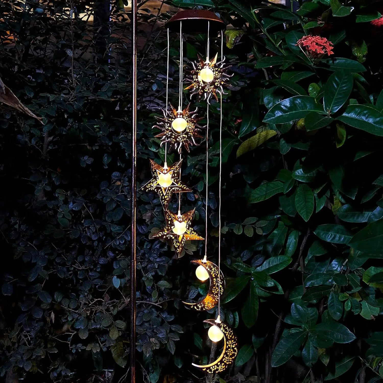 Solar Wind Chimes With Sun Moon Star Lights Outdoor Garden