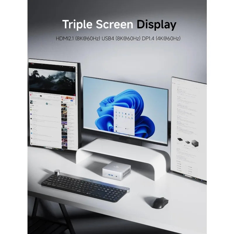 The UM870 is built for those who want desktop-level capability in a tiny package. Perfect for creators, developers, and compact workspaces, it handles demanding applications while preserving a tidy setup. With 8K60Hz readiness across HDMI and DP and modern USB4, you can connect high-resolution displays, fast storage devices, and peripherals with ease.