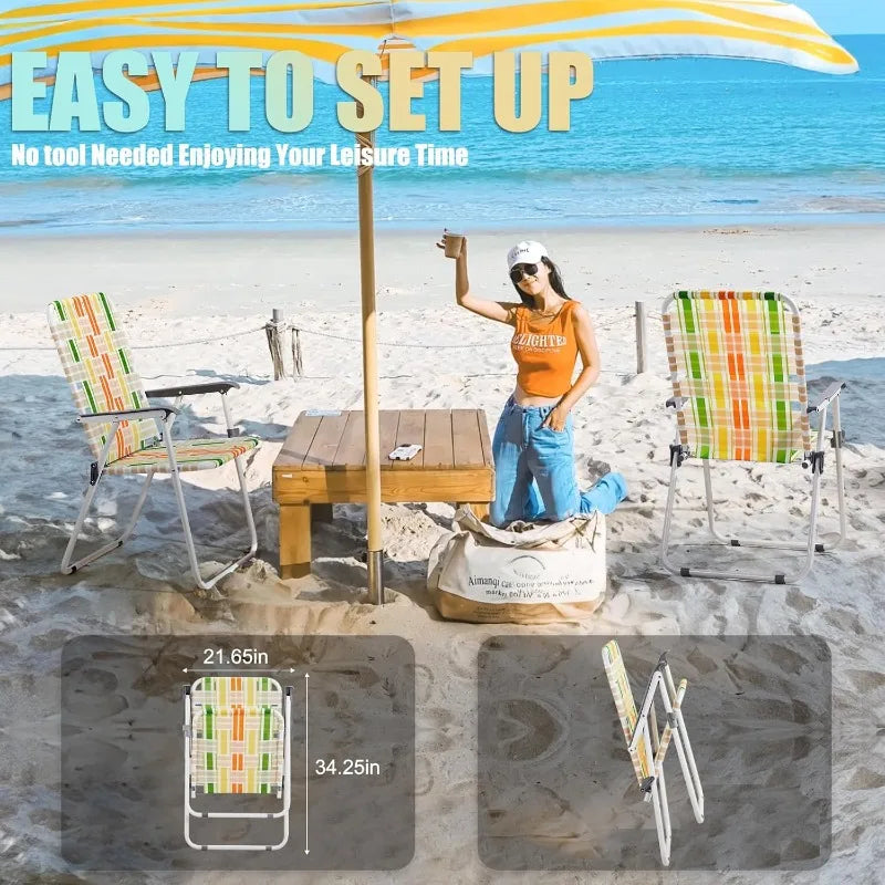 Portable & Lightweight — Each chair weighs only 9 lb and folds compactly for easy storage and transport. Folded dimensions are about 21.7" L x 2.8" W x 34.3" H, with a weight capacity of 265 lbs per chair. A practical choice for car trips to the campsite, the beach, or a backyard gathering.